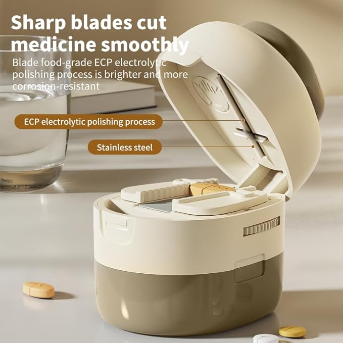 - 【Safe & Durable Design】Built with a hidden stainless-steel blade for safer use, preventing fingers from contact. Made of thickened food-grade material that’s shatter-resistant and BPA-free, ensuring safe medication handling for seniors, adults, kids, and pets.