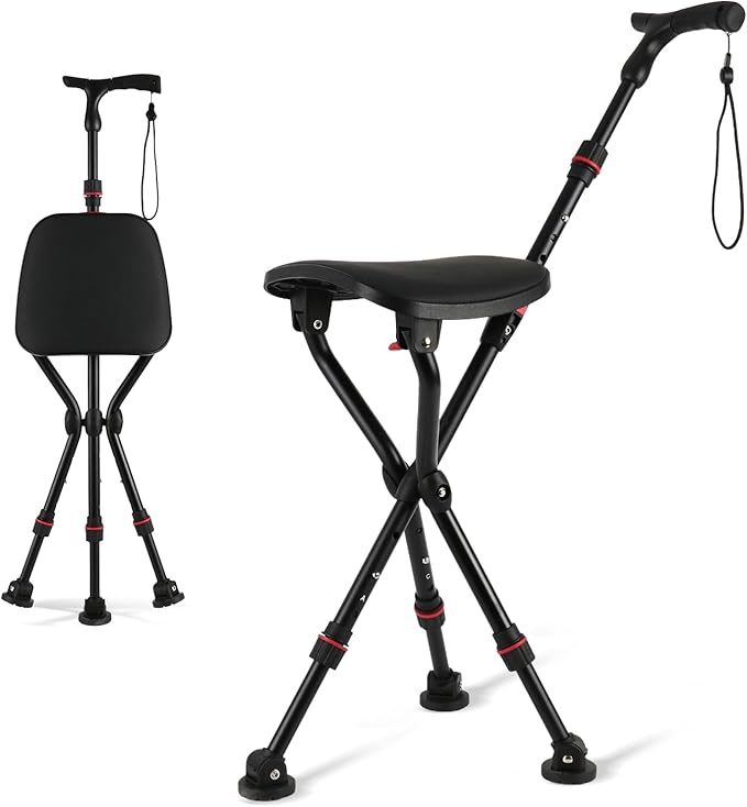 Walking Cane with Seat Holding 400 lbs โ Heavy-Duty Folding Cane Chair with Upgraded Detachable 3 Legs, ABC Markings, Adjustable 19"-22" Seat Height, Large Comfort Seat for Seniors