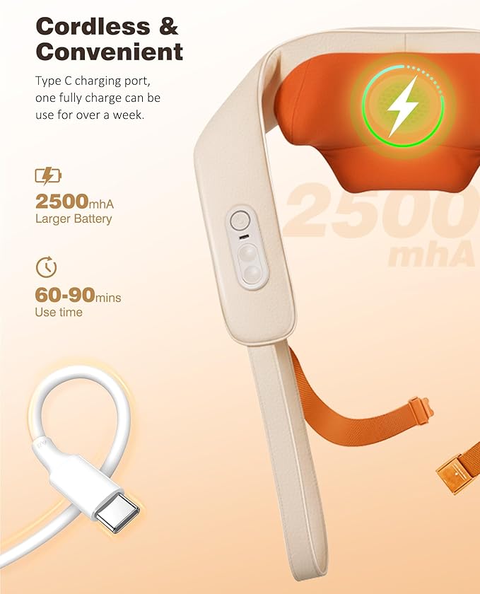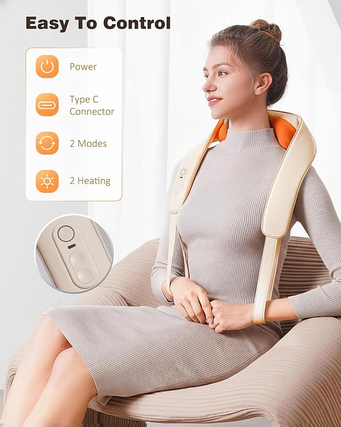- Customized Neck and Shoulder Massager: KNQZE upgraded neck and shoulder massager adopt 4D kneading technology, it can simulate the real hands of a professional masseur. You can choose from two massage modes and two heating levels to personalize your deep tissue massage experience. NOTE: For your better experience, please fully charge this massager before your first use. THIS MASSAGER CANNOT BE USED WHILE IT IS CHARGING.