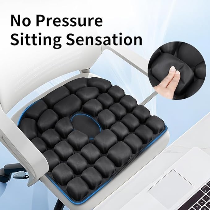 - Breathable & Waterproof & Non-Slip:made of hybrid Breathable and waterproof material with 3D airflow channels, car seat cushions for driving maximizes ventilation to minimize sweat during prolonged sitting. Silicone grip dots anchor securely on airplane seats, car seats, wheelchairs, and office chairs. Its waterproof design applies for in any environment,