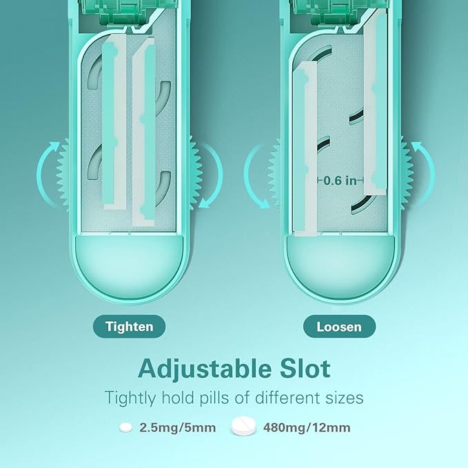 - 【Accurate Cutting For Pills of Any Size】There are 2 adjustable bars of this pill splitter that can safely accommodate pills of any size, round, rectangular or oval. This pill cutter splitter for small and tiny pills can cut pills with a width of 2mm-15mm, so it can easily cut tiny pills of 2.5mg